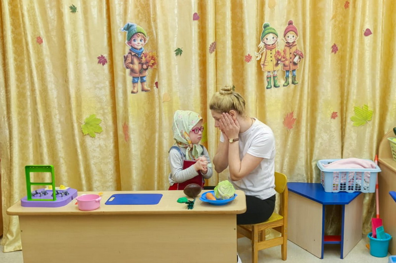 На отделении социального обслуживания детей-инвалидов состоялось увлекательное занятие, в ходе которого воспитанники приняли участие в мини-сценке "Однажды хозяйка с базара пришла".