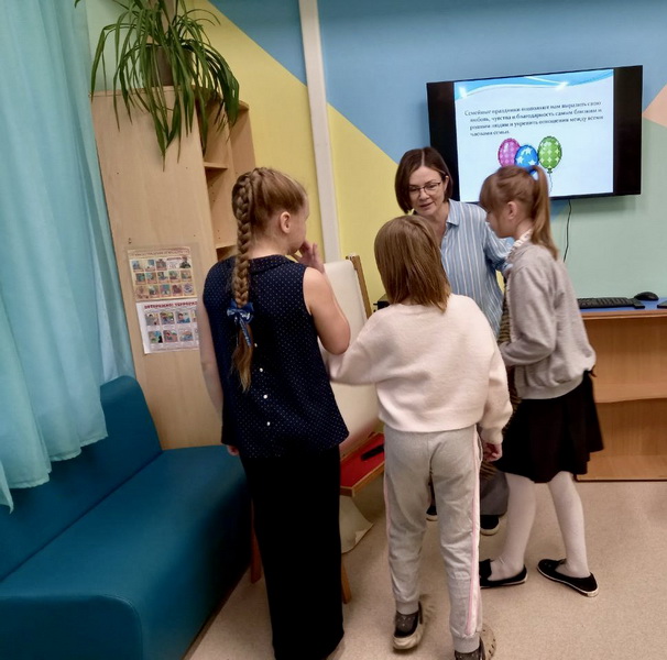На полустационарном отделении социального обслуживания несовершеннолетних и семей с детьми состоялось занятие по программе «Тепло семьи», нацеленное на воспитание у ребят уважения к семье и понимание важности семейных традиций и праздников.