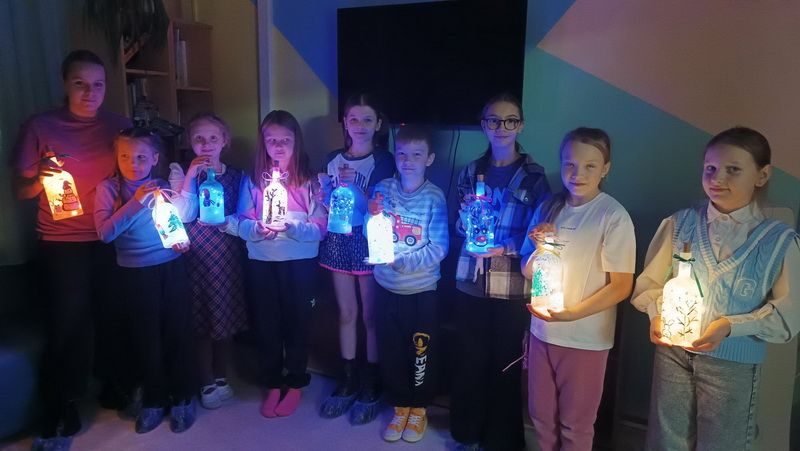 В рамках технологии "Семейная диспетчерская" на полустационарном отделении социального обслуживания несовершеннолетних и семей с детьми состоялся мастер-класс по росписи новогодних сказочных бутылочек с гирляндой.