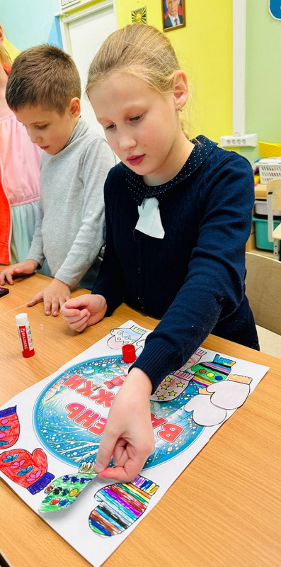 Ребята отделения социального обслуживания несовершеннолетних и семей с детьми узнали много интересных фактов о варежках, поиграли в интерактивную игру и сделали плакат, на котором каждый ребенок создал свою неповторимую варежку.