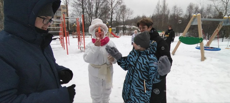Главным персонажем праздника стал Снеговик, который предложил ребятам игры на ловкость и смекалку. Дети активно участвовали в эстафетах "Переправа по льдинкам", "Метание снежков", "Прокати зайку на санках".