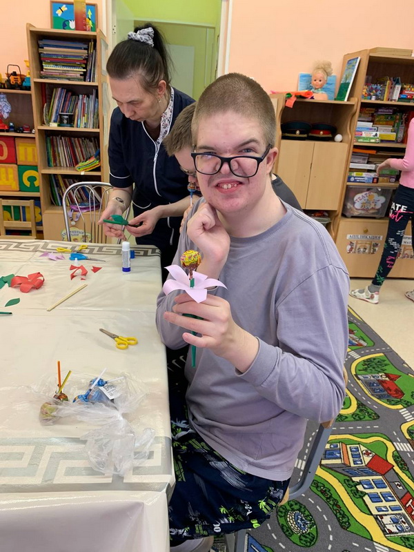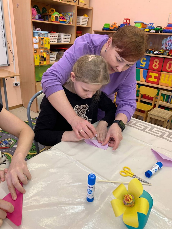 На отделении социального обслуживания детей-инвалидов состоялся мастер-класс по оригами «Цветочек с конфеткой».