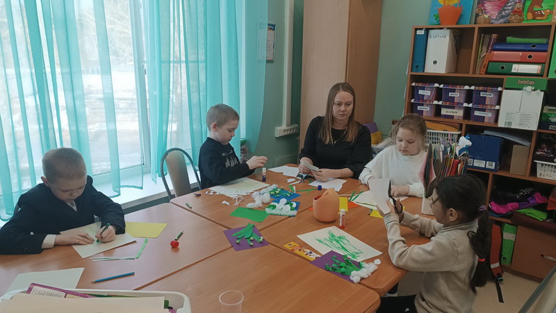 На полустационарном отделении социального обслуживания несовершеннолетних и семей с детьми состоялось занятие по объёмной аппликации "Подснежник".