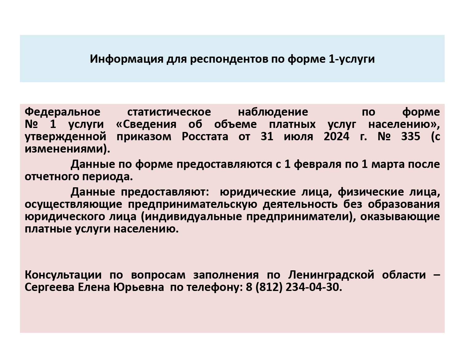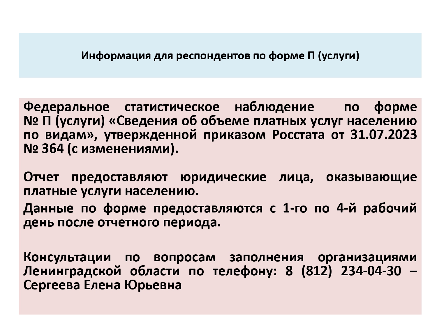 Информируем респондентов о необходимости предоставления статистических отчетов по формам: № П (услуги) «Сведения об объеме платных услуг населению (по видам)» и № 1-услуги «Сведения об объеме платных услуг населению»