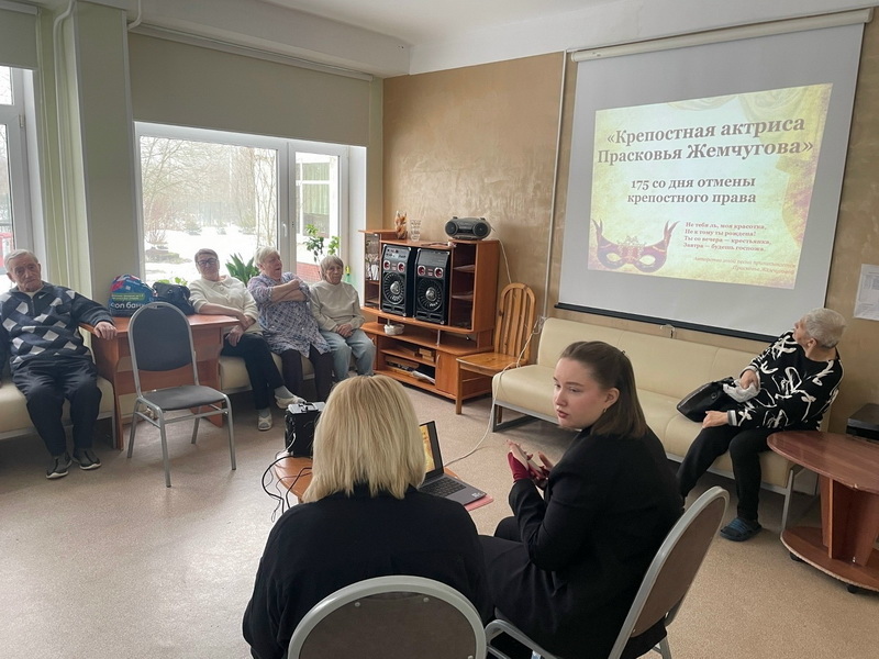 Клиентам реабилитационного отделения представили увлекательную лекцию о жизни и творческом пути артистки, сыгравшей значительную роль в истории российского театра. Далее состоялось оживленное обсуждение роли Жемчуговой в культурной жизни России XVIII века.