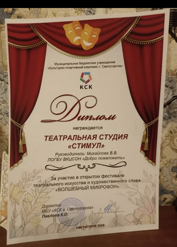 За участие в фестивале коллектив "Стимул" был награжден дипломом.