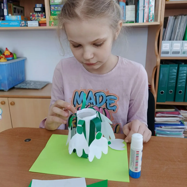 На отделении детей-инвалидов состоялось занятие по аппликации, где ребята сделали из бумаги чудесные первоцветы - подснежники. Эти цветы - настоящее украшение природы ранней весны.
