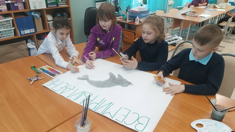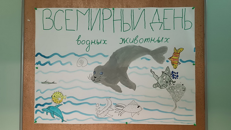 В результате совместной работы был создан красочный плакат, который напоминает о важности заботы о водных животных и сохранении их среды обитания.